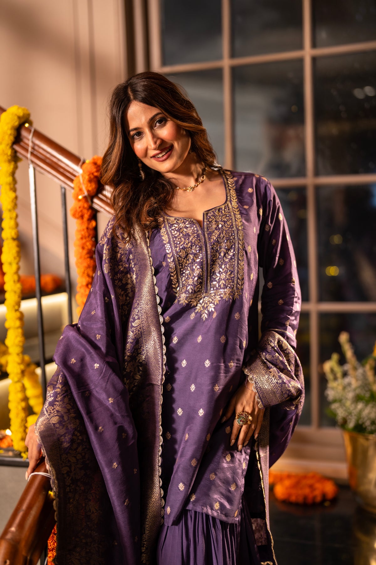 Purple Banarasi with Gota Work Sharara Set