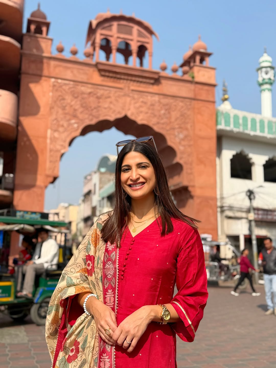 Aahana Kumra Shubh Red Kalamkari Dupatta Suit Set