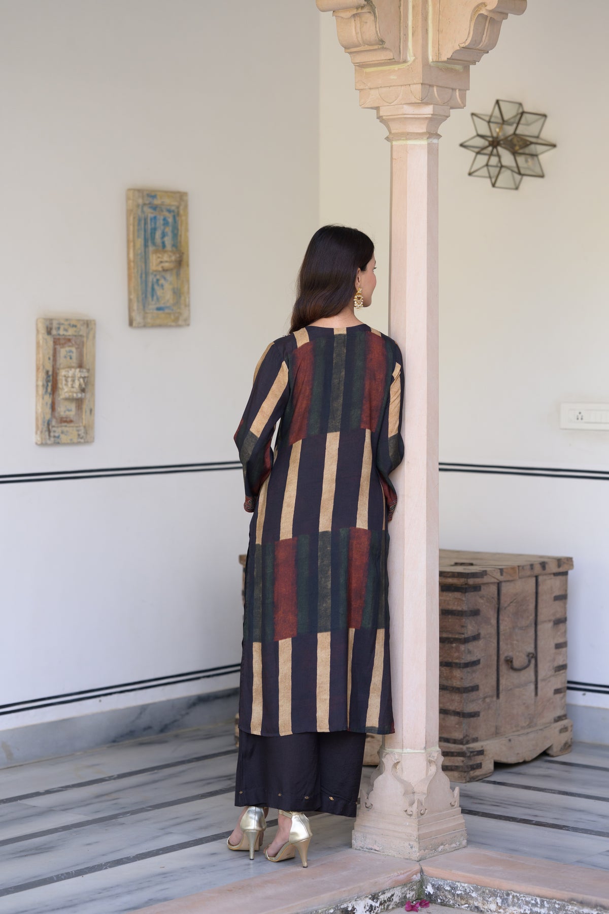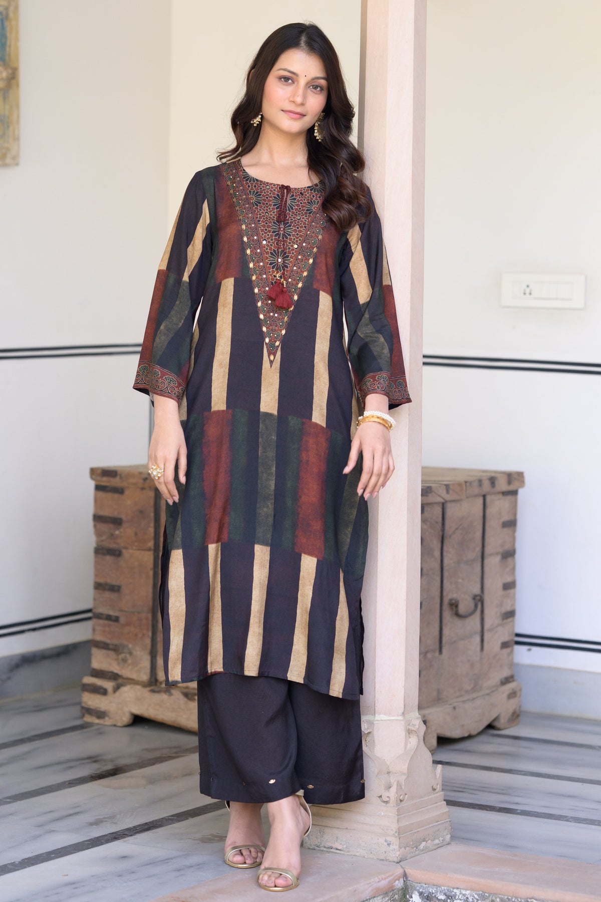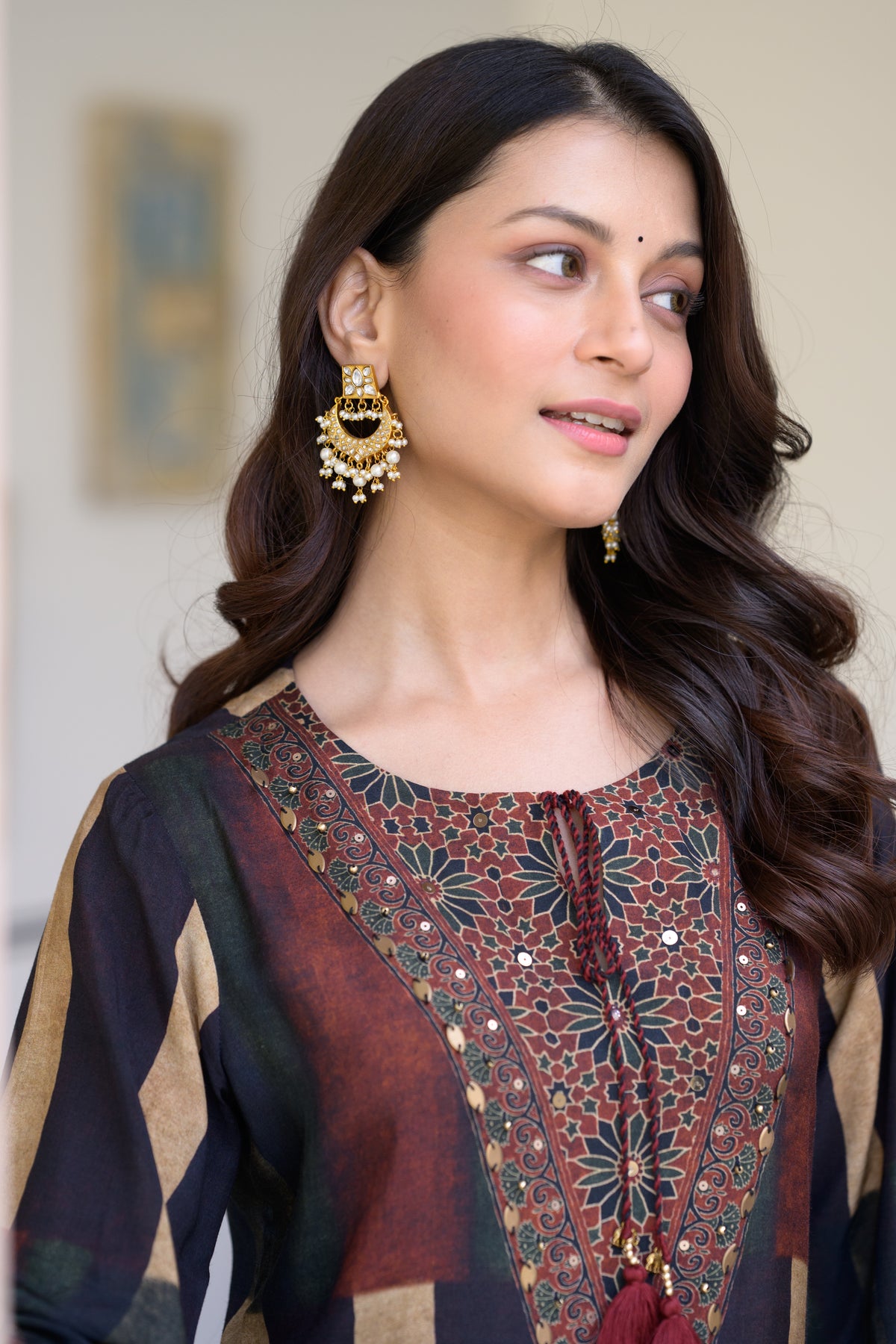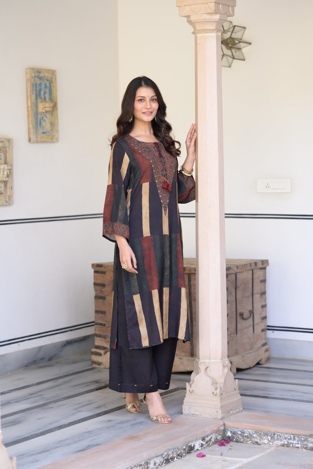 Rustic Brown Ajrakh Print Muslin Kurta Set